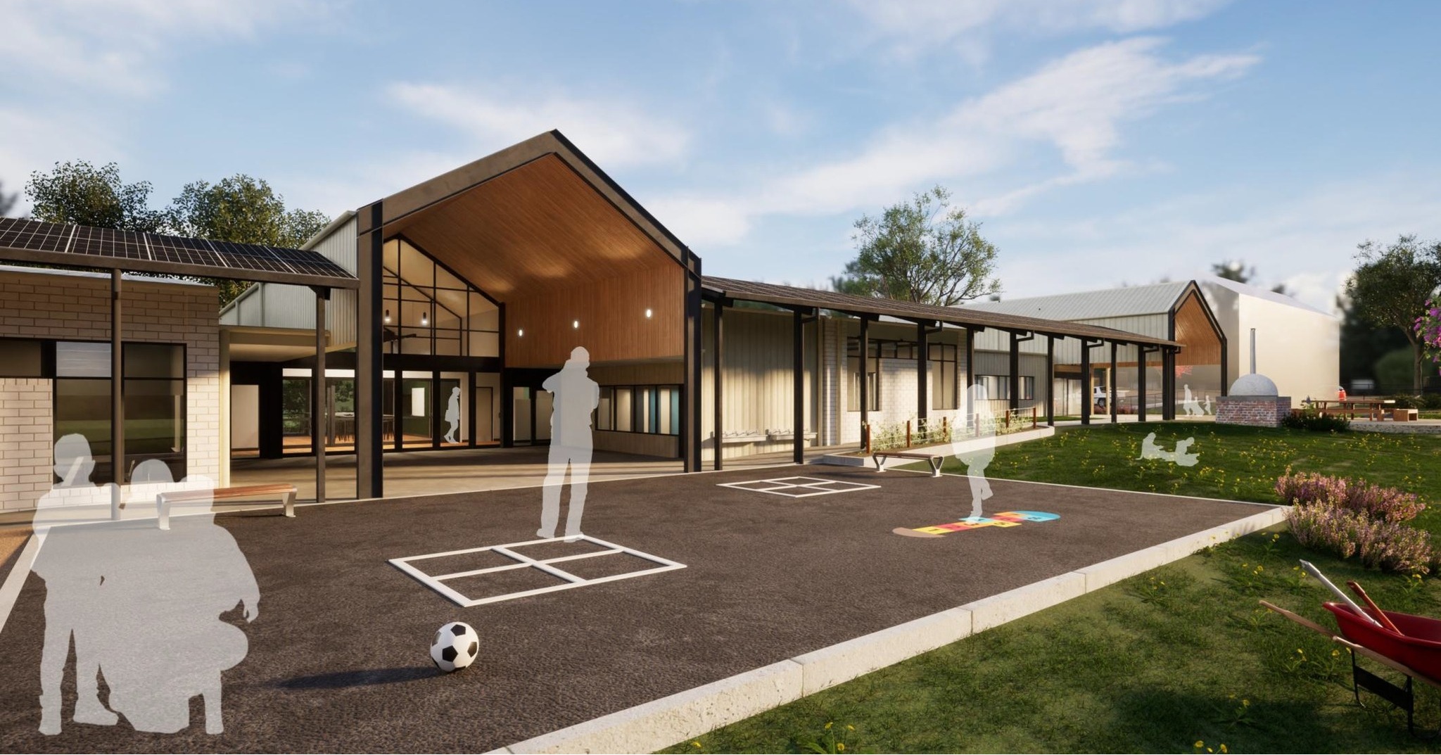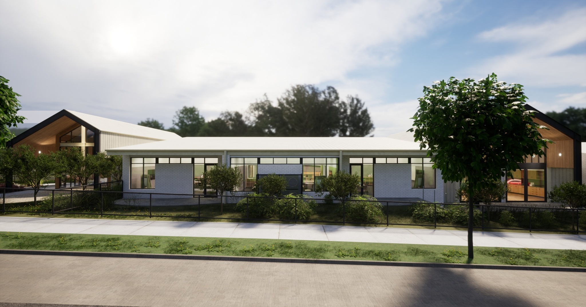 Construction of new Administration facility, two Learning Centre wings, Art hub, Amenities block, Bike enclosure, Fire tank/pump enclosure, Carpark and landscaping including a rain garden.